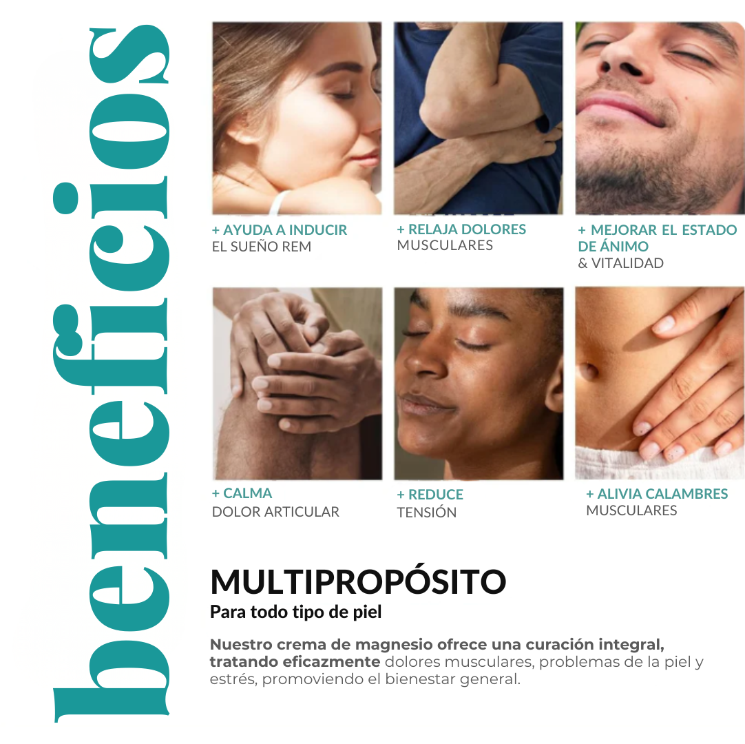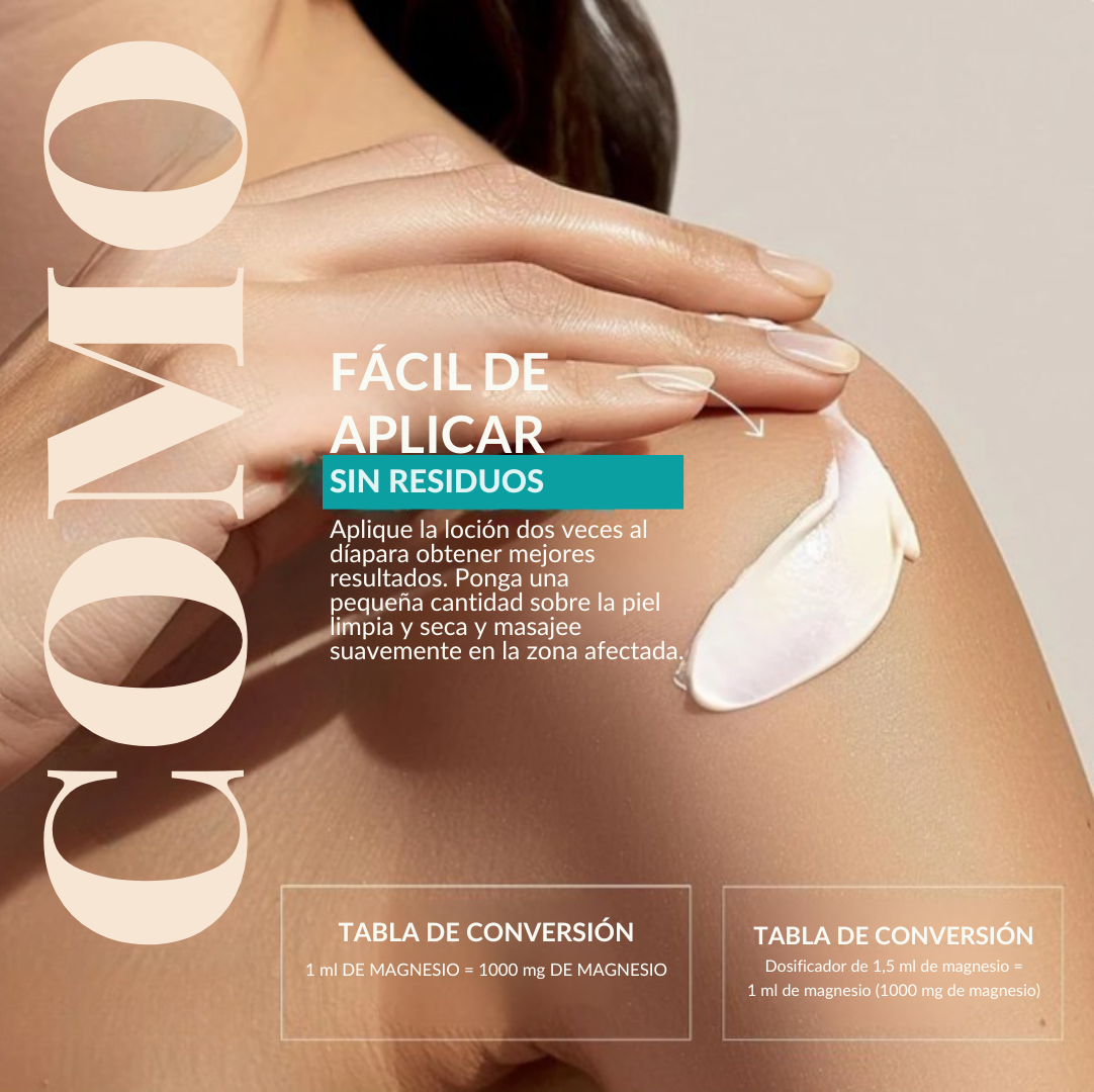 Nuestra exclusiva fórmula combina Cloruro de Magnesio y Jugo de Hoja de Aloe Vera, en una loción que se absorbe fácilmente a través de la piel para brindar alivio muscular, mejorar el descanso y renovar tu energía.